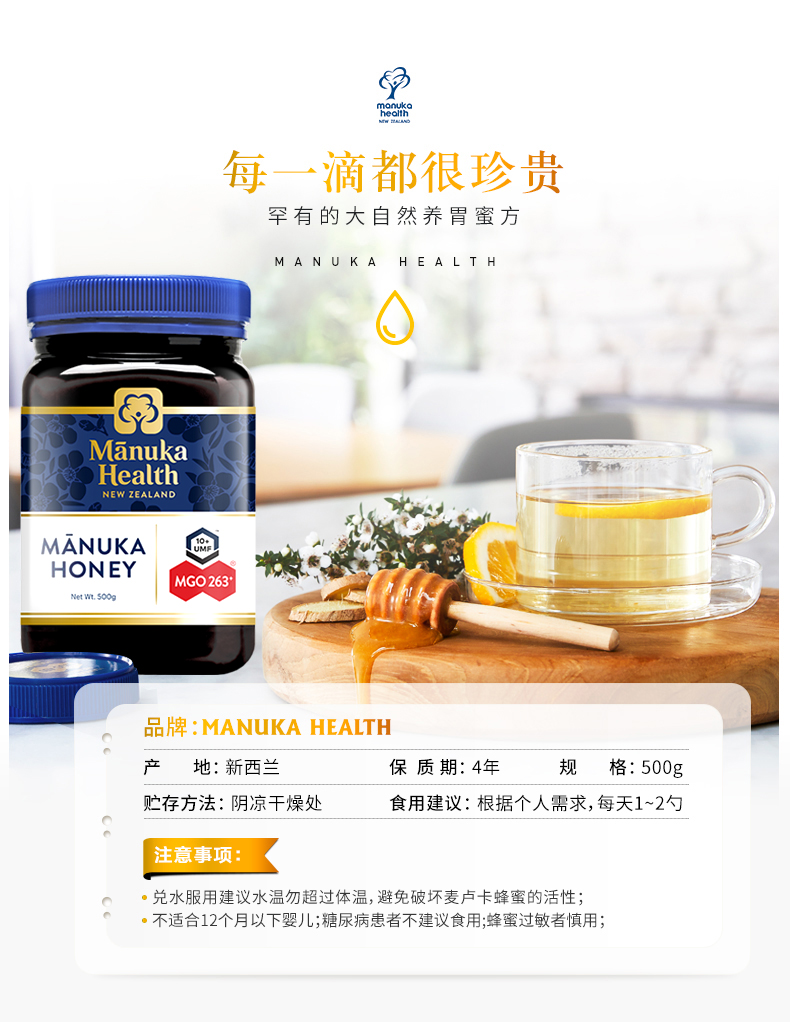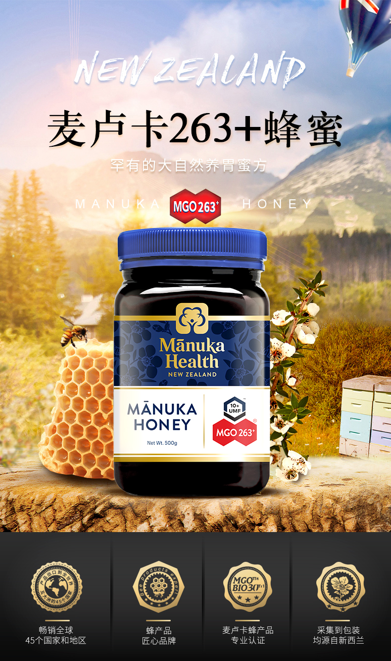 新西兰Manuka蜜纽康麦卢卡蜂蜜MGO263+500g进口野生蜂蜜UMF10+