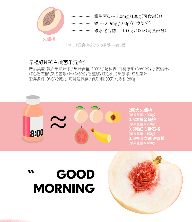 零度果坊早橙好 NFC果汁 白桃芭乐混合汁100%早餐果汁280g*8瓶装