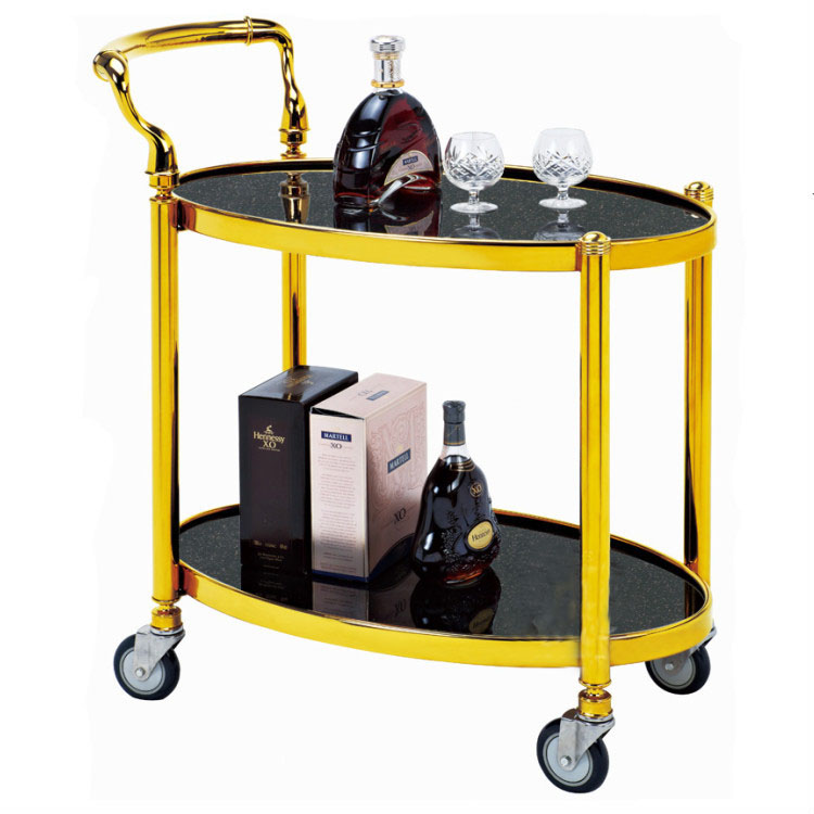 批发酒店镜金酒水移动送餐车 双层欧式服务手推车 蛋糕车 L940*W480*H970mm